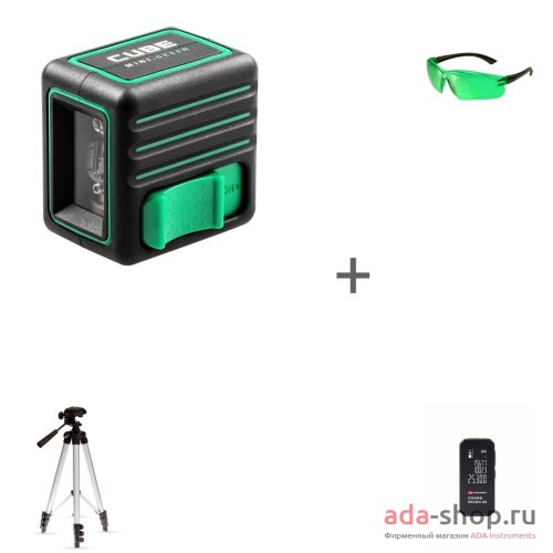 Уровень лазерный ADA Cube Mini Green Basic Edition + Очки лазерные VISOR GREEN + Лазерная рулетка А00670 + Штатив Фото/Видео ADA DIGIT 130 в подарок!
