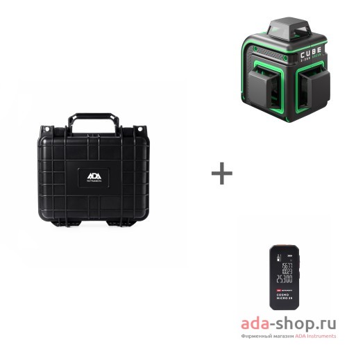 Высокопрочный противоударный герметичный кейс ADA HARD CASE 4500 + Уровень лазерный CUBE 3-360 GREEN BASIC EDITION + Лазерная рулетка А00670 в подарок!